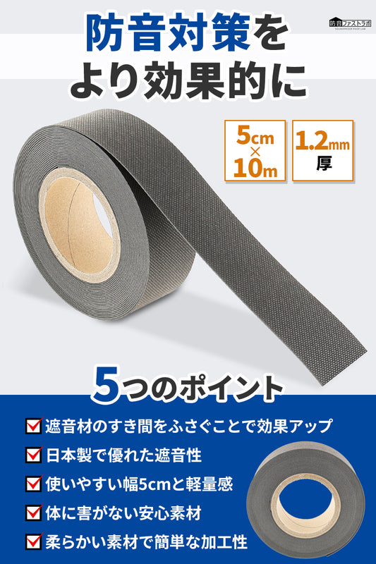 日本製 遮音シートロール【 すきまの音漏れ対策に 】幅5cm×長さ10m 厚さ1.2mm 面密度 約2.1kg/m3