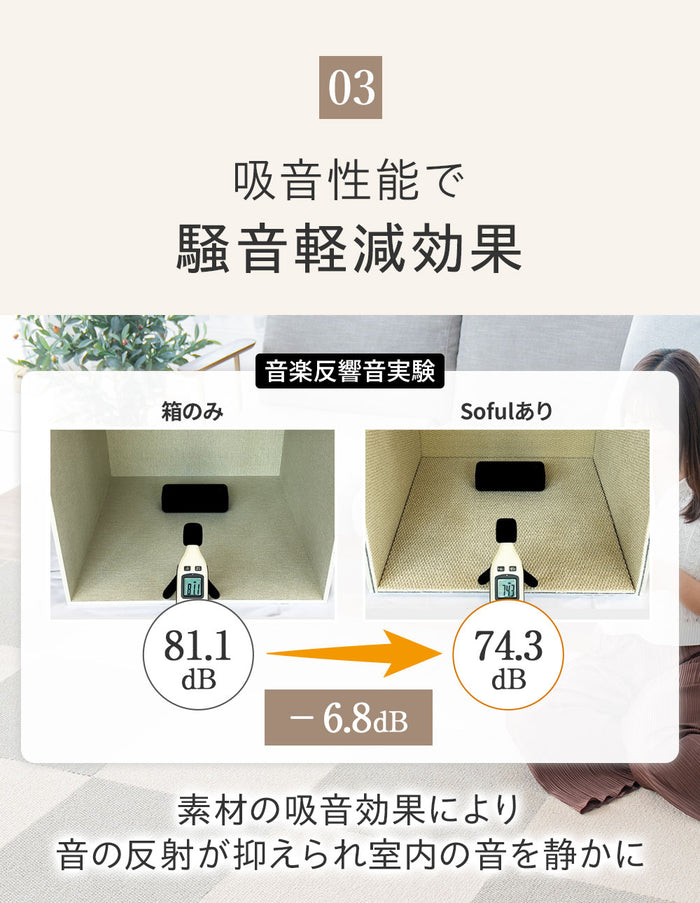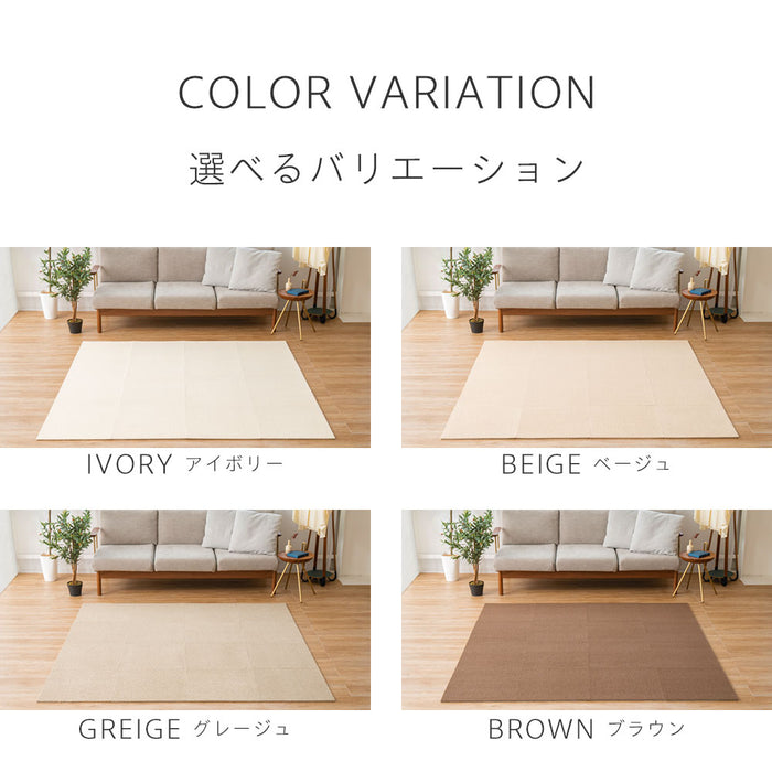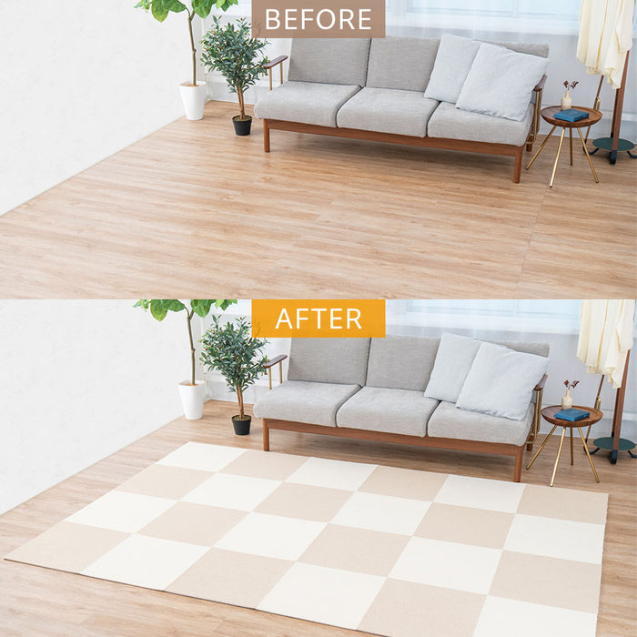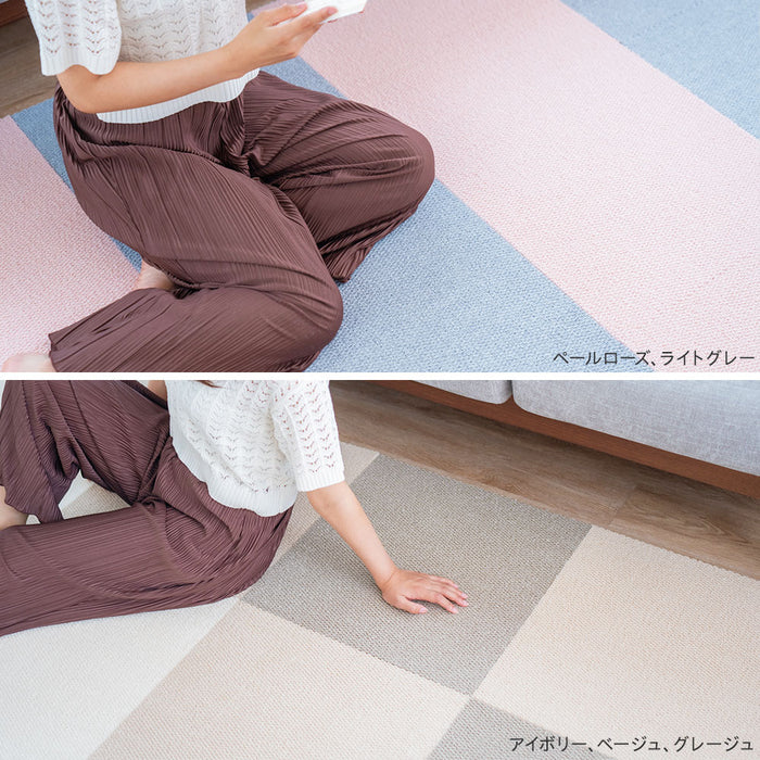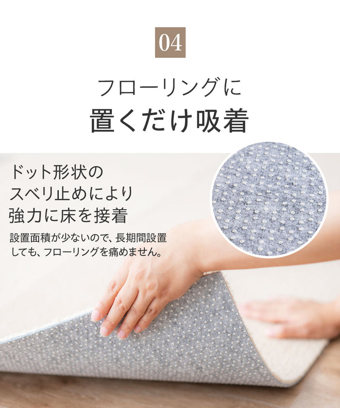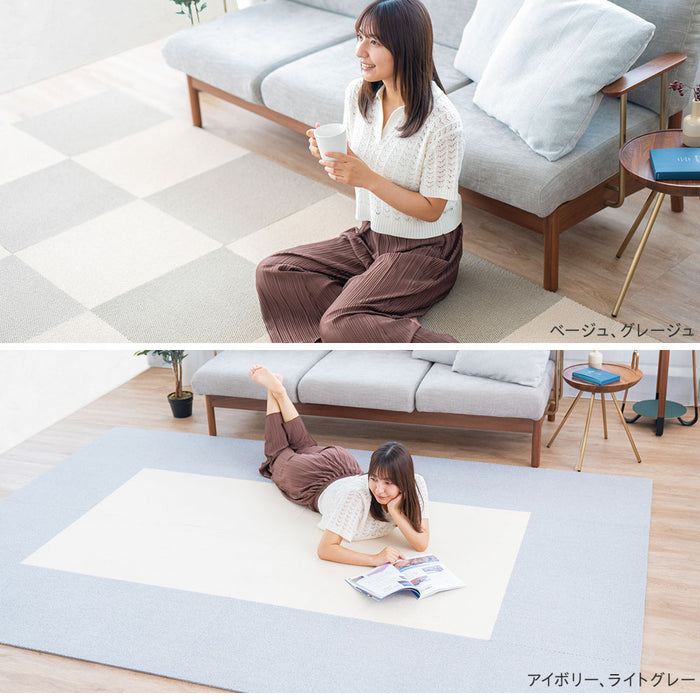 【 気にしていた生活音の軽減に 】 日々の暮らしの中で絶対に避けられないのが生活音。足音はもちろん、掃除をするときや趣味で楽器を弾いたり、健康のために体を動かしたりするときの音も気にしている床への騒音に耐衝撃性があるカーペットがあれば安心です。 【 お子さんやペットの騒音にも 】 子どもはおもちゃを投げたり落としたり、室内を駆け回ったり。または、ペットの出す音。鳴き声や室内を走り回る音も。そのたびに下の階への騒音の心配で不安。そのような悩みにも、下の階への騒音の軽減になり、さらにフロアの傷や汚れも防ぐことができます。" 【 日本製の優れた技術 】 日本製の確かな品質をお約束いたします。カットサイズ、カラー、毛足の長さなどの品質にムラがなく高クオリティ。イヤな臭いもなく、使い始めた直後から快適に過ごすことが出来ます。 【 豊富な9カラーバリエーション 】 床を覆うカーペットだからこそ色味は重要。豊富でデザイン性のあるカラーバリエーションにより、インテリアに合う空間にすることが出来ます。 【 軽量で簡単持ち運び 】 カーペットにありがちな、厚みやクッション性があるけど重くて持ち運びが難しい。。当店のカーペットは、厚みもクッション性もありながら、軽量なので設置や移動、片付けにも負担を感じることはありません。 【 ダニの心配無し 】 お洒落な空間を演出しながら、フロアを守るためにも何かカーペットがほしい。ただ、カーペットだとダニの心配が……という方でも、防ダニ加工でダニを寄せ付けないので安心です。 【 ズレの心配無し 】 せっかく場所を決めて敷物を置いても、気づいたらズレている……そんな経験はありませんか?裏面にはスベリ止め加工が採用されているので、置くだけでしっかりと吸着してくれます。 【 部分洗いでお手入れ簡単】 万が一汚れてしまったときには簡単に手洗い可能。50cm×50cmのタイルカーペットなので汚れた部分だけを取り外すことができ、手間も時間も大幅に節約できます。 【 通気性があり省エネ】 足元に置く敷物だからこそ、やはり湿気は気になるもの。裏面の基層がフェルト状の不織布で通気性があり、湿気がこもりにくい仕様になっています。床暖房やHOTカーペットにも対応しているので寒い時期でも安心です。 【 ご注意 】 ※製品の特性上、開封後、カットしたパイルの繊維くずなどが多く出る場合がございます。製品の品質上問題はありませんが、掃除機などで除去しながら施工いただきますようお願いいたします。 「塩化ビニール」また「ワックスのかかった床材」で、長期間使用されますと床面が変色する場合があります。こちらの素材の場合、月に一度位置をずらしたり、床面を乾拭きしたりしてください。 タイルカーペットの上に長期間重い物を乗せるますと、カーペットが剥がしにくくなりますので、ゆっくりと剥がしてください。 タイルカーペットを剥がした際、吸着面が床材に残った場合、ぞうきんで拭き取ってください。 畳、べニア板、モルタル、フェルトなどの素材には、吸着面が機能しませんので、別途、両面テープなどで接着が必要となります。 |