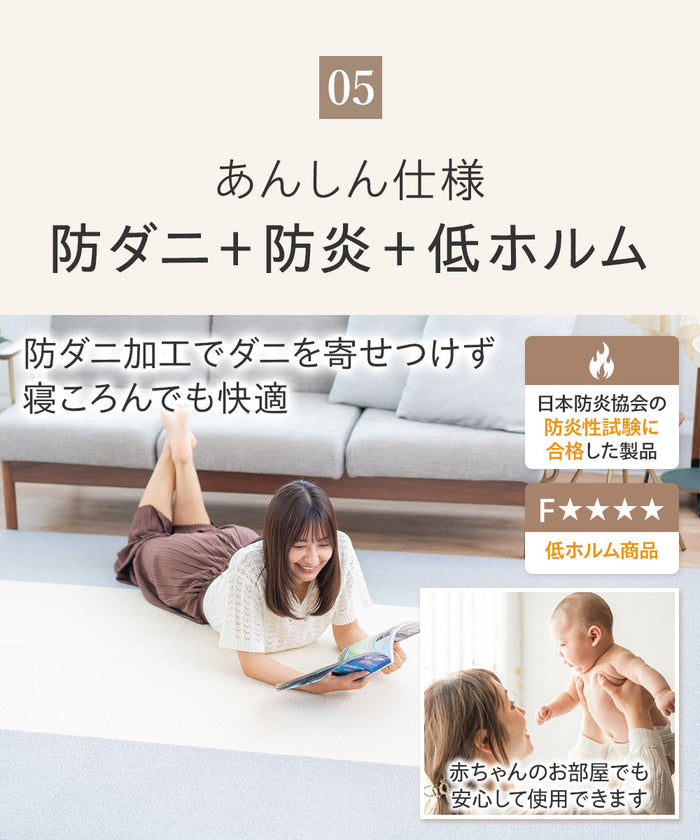 防ダニ | 安全性・持続性に優れた防ダニ加工を基布に施したカーペットタイルです。 |