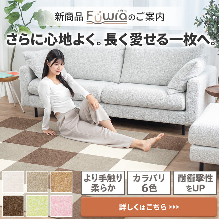 | 【 気にしていた生活音の軽減に 】 日々の暮らしの中で絶対に避けられないのが生活音。足音はもちろん、掃除をするときや趣味で楽器を弾いたり、健康のために体を動かしたりするときの音も気にしている床への騒音に耐衝撃性があるカーペットがあれば安心です。 【 お子さんやペットの騒音にも 】 子どもはおもちゃを投げたり落としたり、室内を駆け回ったり。または、ペットの出す音。鳴き声や室内を走り回る音も。そのたびに下の階への騒音の心配で不安。そのような悩みにも、下の階への騒音の軽減になり、さらにフロアの傷や汚れも防ぐことができます。" 【 日本製の優れた技術 】 日本製の確かな品質をお約束いたします。カットサイズ、カラー、毛足の長さなどの品質にムラがなく高クオリティ。イヤな臭いもなく、使い始めた直後から快適に過ごすことが出来ます。 【 豊富な9カラーバリエーション 】 床を覆うカーペットだからこそ色味は重要。豊富でデザイン性のあるカラーバリエーションにより、インテリアに合う空間にすることが出来ます。 【 軽量で簡単持ち運び 】 カーペットにありがちな、厚みやクッション性があるけど重くて持ち運びが難しい。。当店のカーペットは、厚みもクッション性もありながら、軽量なので設置や移動、片付けにも負担を感じることはありません。 【 ダニの心配無し 】 お洒落な空間を演出しながら、フロアを守るためにも何かカーペットがほしい。ただ、カーペットだとダニの心配が……という方でも、防ダニ加工でダニを寄せ付けないので安心です。 【 ズレの心配無し 】 せっかく場所を決めて敷物を置いても、気づいたらズレている……そんな経験はありませんか?裏面にはスベリ止め加工が採用されているので、置くだけでしっかりと吸着してくれます。 【 部分洗いでお手入れ簡単】 万が一汚れてしまったときには簡単に手洗い可能。50cm×50cmのタイルカーペットなので汚れた部分だけを取り外すことができ、手間も時間も大幅に節約できます。 【 通気性があり省エネ】 足元に置く敷物だからこそ、やはり湿気は気になるもの。裏面の基層がフェルト状の不織布で通気性があり、湿気がこもりにくい仕様になっています。床暖房やHOTカーペットにも対応しているので寒い時期でも安心です。 【 ご注意 】 ※製品の特性上、開封後、カットしたパイルの繊維くずなどが多く出る場合がございます。製品の品質上問題はありませんが、掃除機などで除去しながら施工いただきますようお願いいたします。 「塩化ビニール」また「ワックスのかかった床材」で、長期間使用されますと床面が変色する場合があります。こちらの素材の場合、月に一度位置をずらしたり、床面を乾拭きしたりしてください。 タイルカーペットの上に長期間重い物を乗せるますと、カーペットが剥がしにくくなりますので、ゆっくりと剥がしてください。 タイルカーペットを剥がした際、吸着面が床材に残った場合、ぞうきんで拭き取ってください。 畳、べニア板、モルタル、フェルトなどの素材には、吸着面が機能しませんので、別途、両面テープなどで接着が必要となります。 |